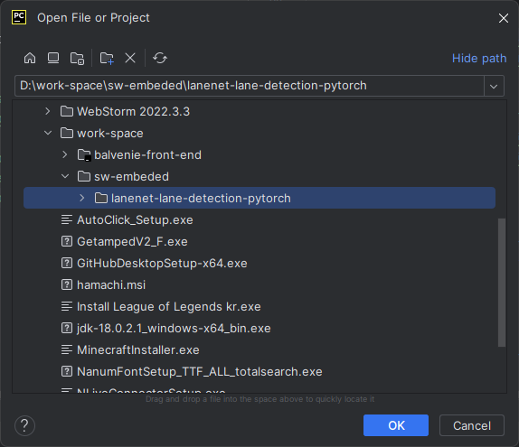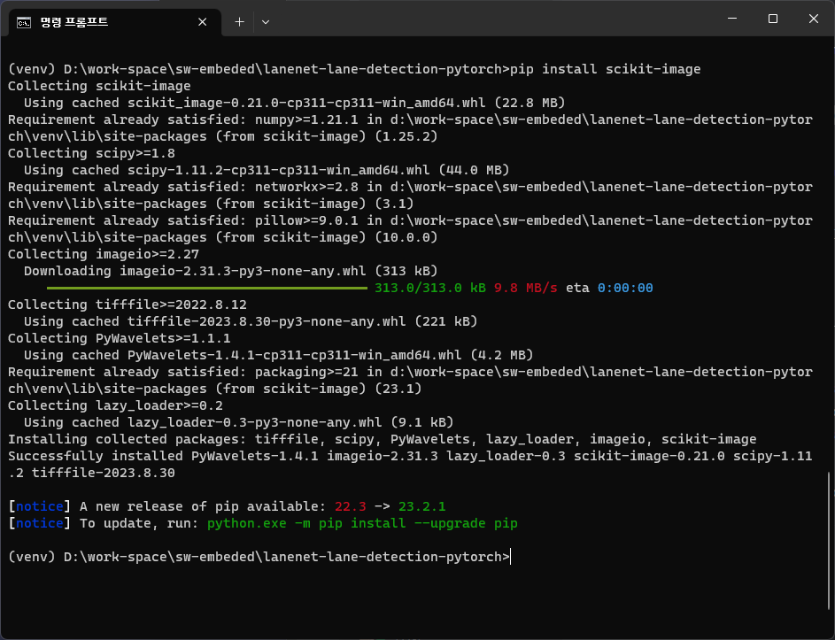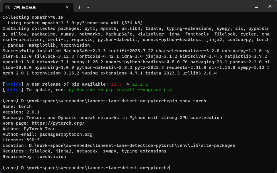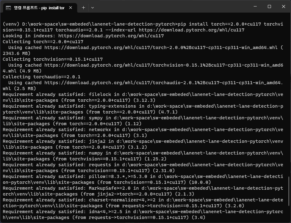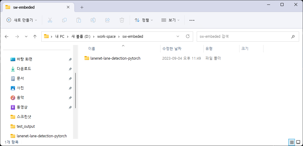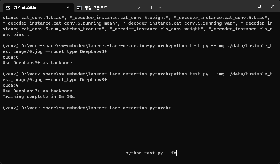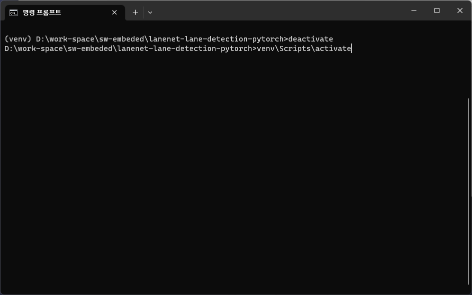 ๋ช ๋ น ํ๋กฌํํธ๋ฅผ ํค๊ณ ์ํ๋ ์์น๋ก ์ด๋ํด lanenet-lane-detection-pytorch ๋ ํฌ์งํ ๋ฆฌ๋ฅผ ํด๋ก ํจ.