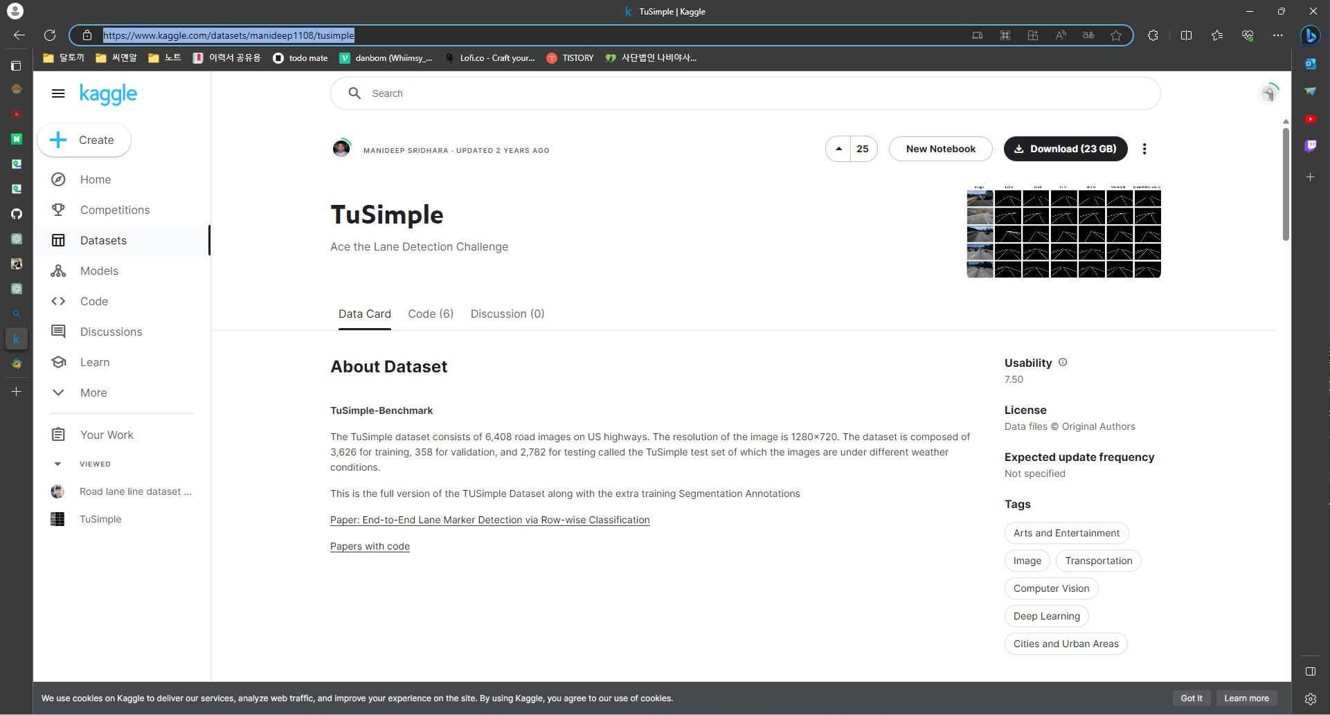 TUSimple ๋ฐ์ดํฐ์ ๋ค์ด๋ก๋ํ๊ณ